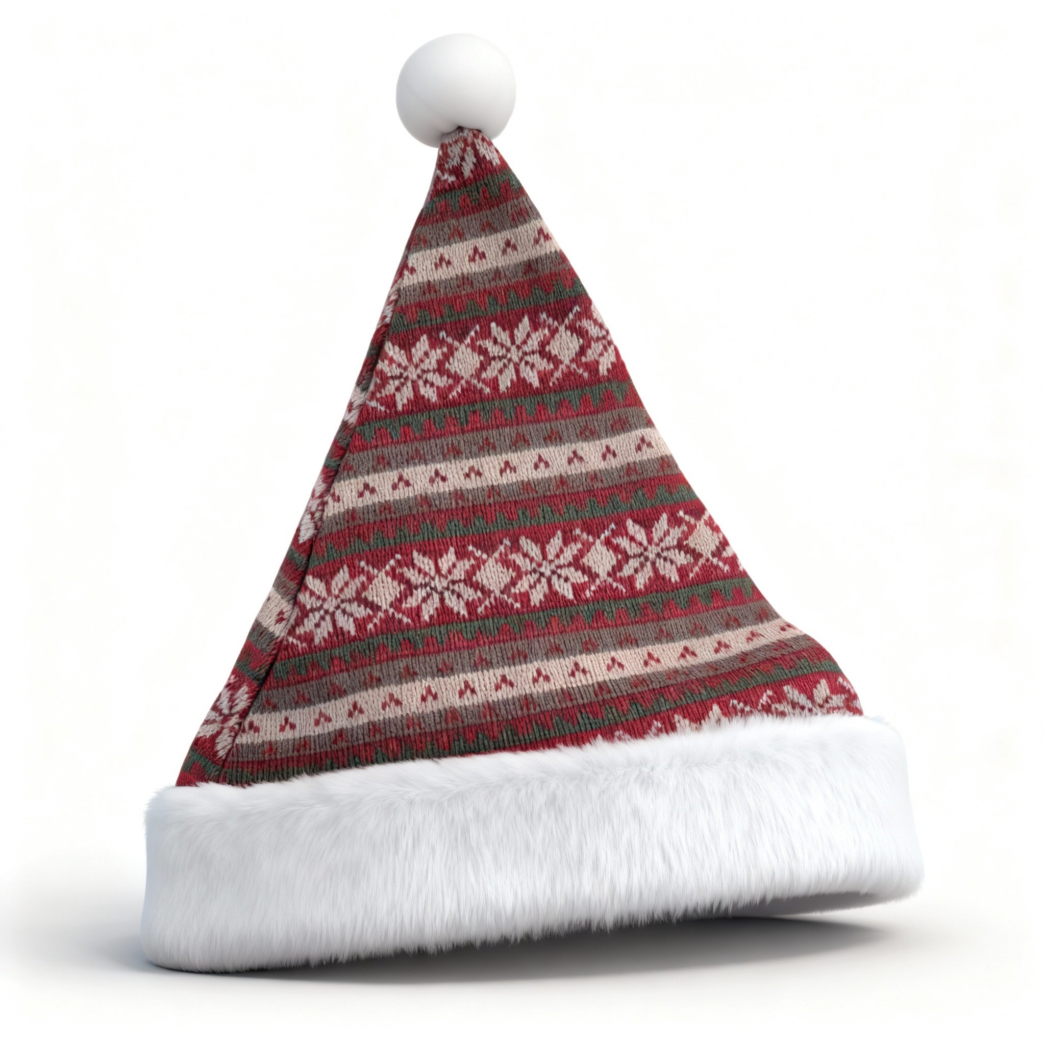 Red and White Nordic Striped Santa Hat With Pom Pom