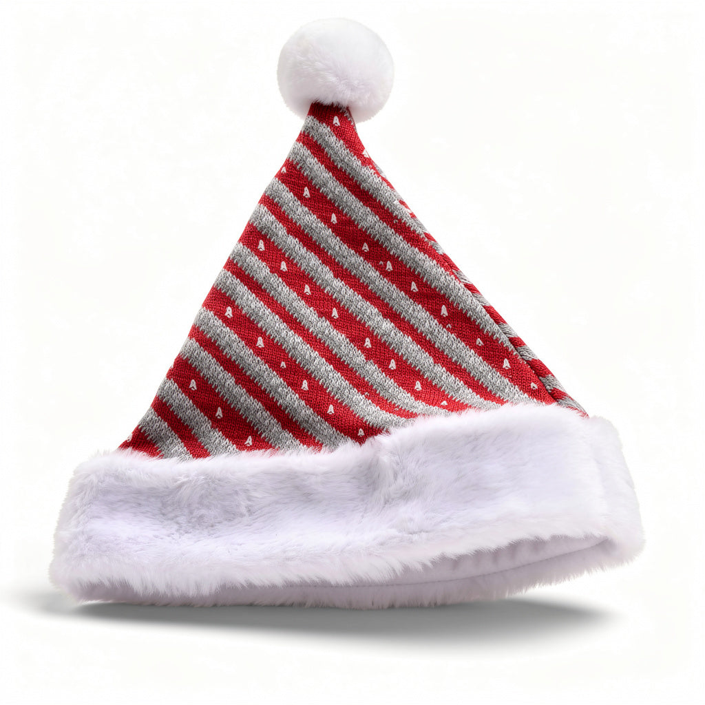 Red & Silver Striped Knit Christmas Santa Hat